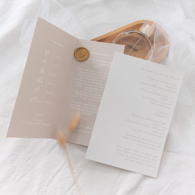 Deze trouwkaart maakt het stijlvolle geheel van "wrapped with love" compleet. Je bestelt dus deze kaart, samen met de dubbele langwerpige kaart om de set compleet te maken!