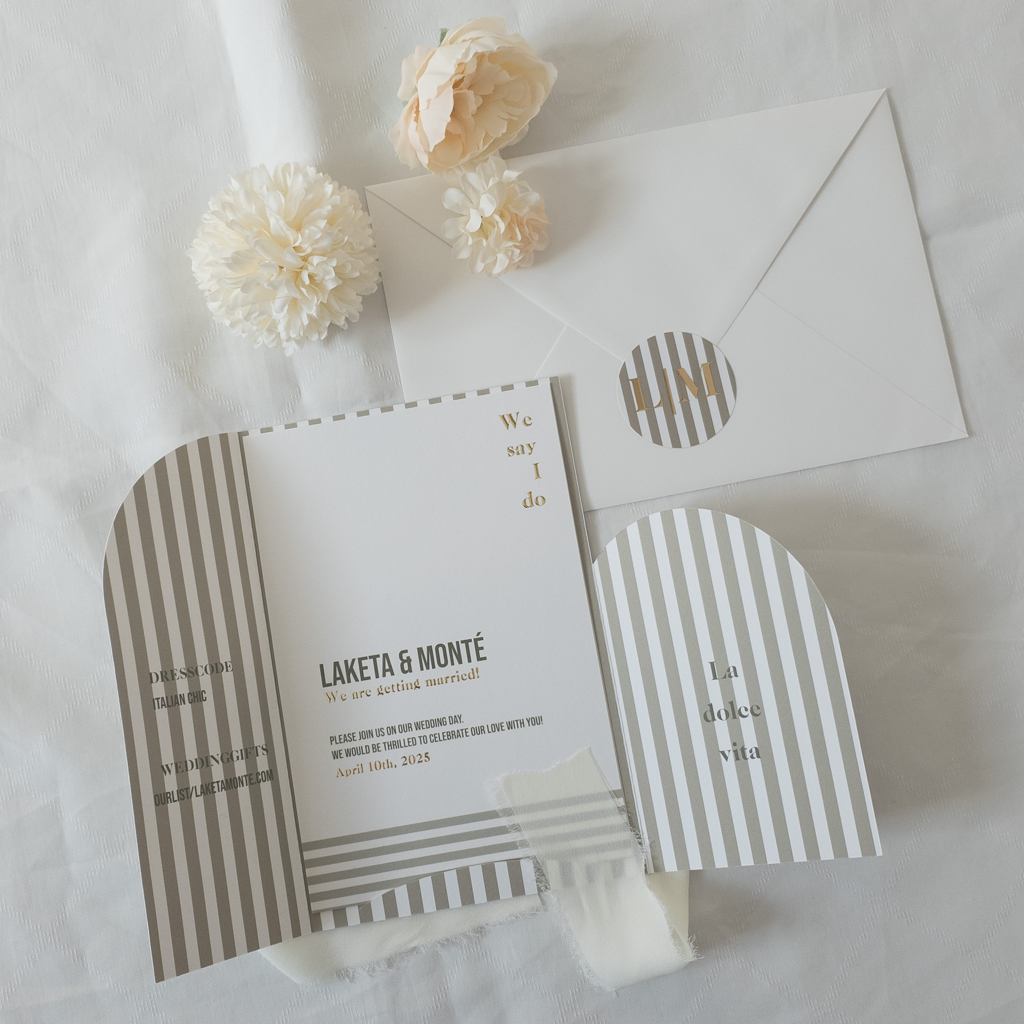Trouwkaart passend bij de trouw huisstijl La dolce vita. Er zijn veel meer onderdelen in deze stijl! Zoek op La dolce vita of kijk op de trouw huisstijlen pagina. Hier bestel je de trouwkaart. Het mapje bestel je er nog los bij!