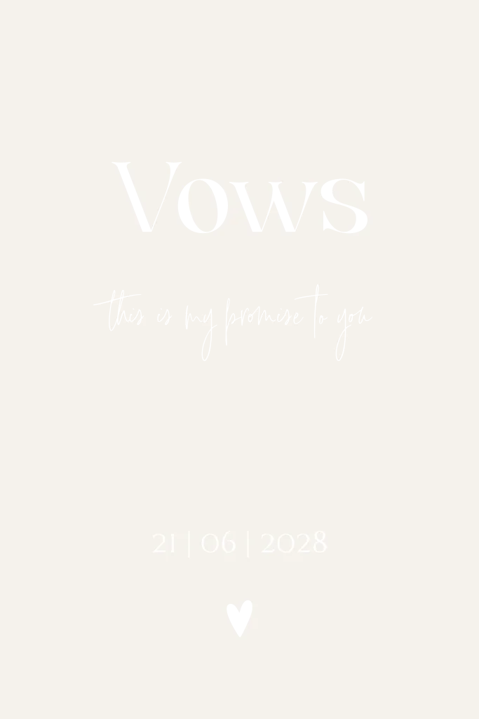 Huwelijksgeloften kaart. Tip: schrijf je geloften op je computer, print deze uit en plak ze in deze dubbele kaart. Of schrijf ze met de hand nadat je ze helemaal klaar en gefinetuned hebt! Natuurlijk kun je je geloften ook direct hier in de editor zetten als je al precies weet wat je wilt gaan zeggen!